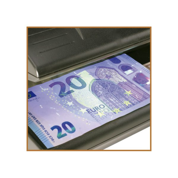 Ο Soldi 185 της ratiotec προσφέρει υψηλή ασφάλεια ενάντια στην πλαστότητα. Τα χαρτονομίσματα περιλαμβάνουν πολλαπλά χαρακτηριστικά ασφαλείας ώστε να επιβεβαιωθεί η αυθεντικότητά τους χωρίς αμφιβολλίες. Αυτή η συμπαγής συσκευή ελέγχου εξετάζει χαρτονομίσματα με τρεις τρόπους: αρχικά με ενσωματωμένο μαγνητικό αισθητήρα, στη συνέχεια με ένα UV φωτισμό των 9 watt και κατά τρίτον με μία λάμπα λευκού φωτός. Αυτό βοηθάει στο να αναγνωρίσετε καθαρά χαρακτηριστικά ασφαλείας που δεν είναι εύκολο να παρατηρήσετε με γυμνό μάτι όπως τα υδατογραφήματα. Το μεγάλο άνοιγμα επιτρέπει τον απλό και γρήγορο χειρισμό ώστε να προσφέρει σίγουρα αποτελέσματα για το κάθε χαρτονόμισμα