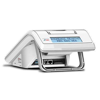 | Θύρες επικοινωνίας | Διαθέτει δύο θύρες RS232, δύο θύρες USB, μια θύρα Ethernet, μια θύρα εισόδου αποσπώμενου αποθηκευτικού μέσου (SD Card), μια θύρα υποδοχής για το συρτάρι ταμείου και μια θύρα τροφοδοσίας ρεύματος, παρέχοντας την δυνατότητα σύνδεσης για barcode Scanner, ζυγ |