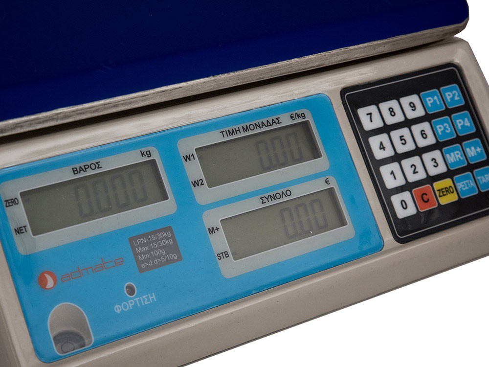 • Βάρη ζύγισης: 15Kg 2/5 gr, 30kg 5/10gr